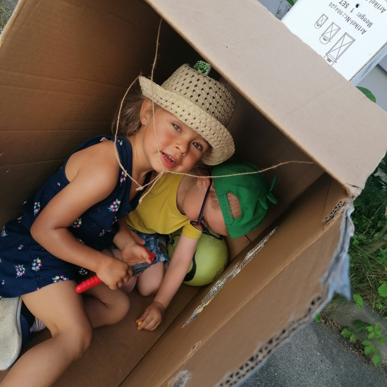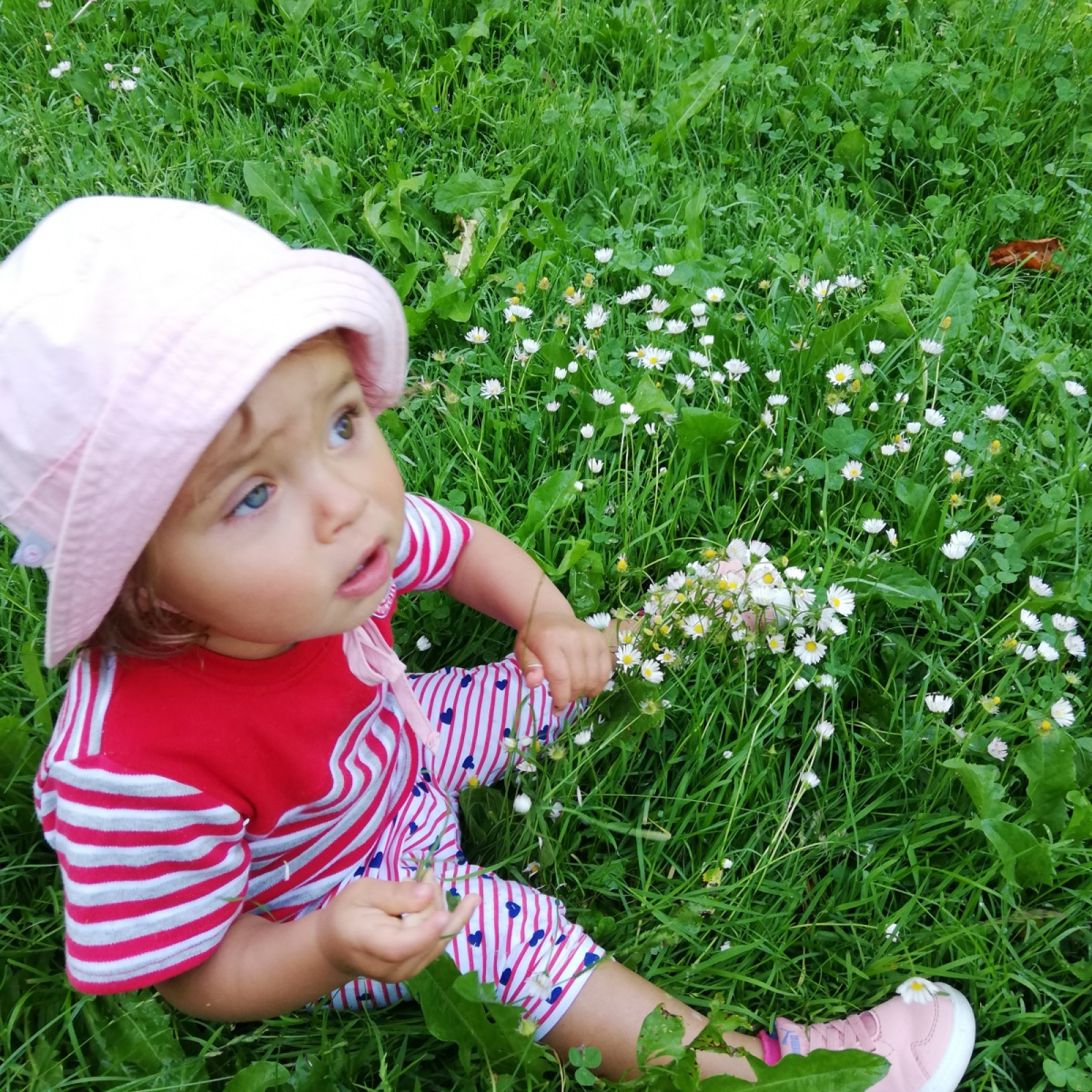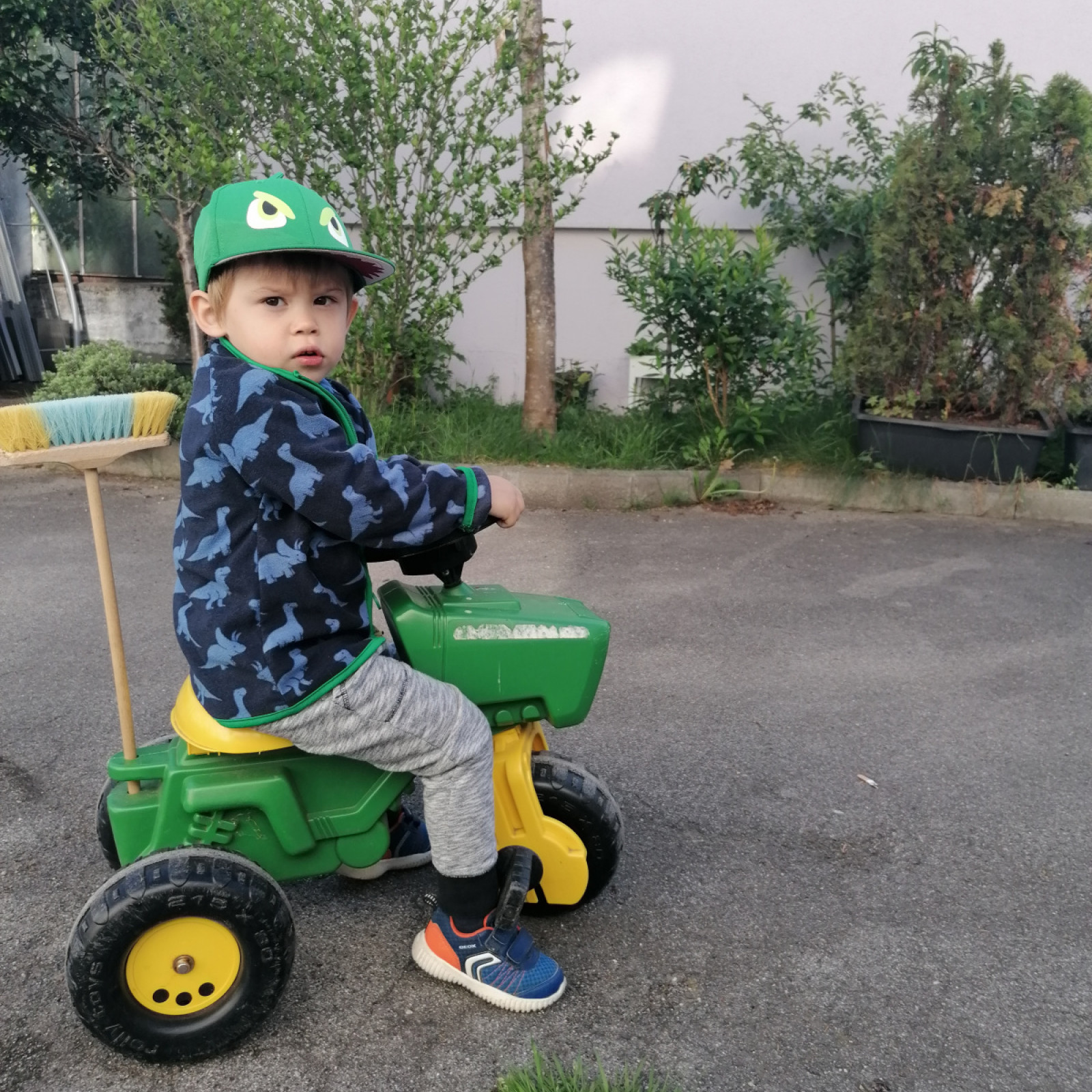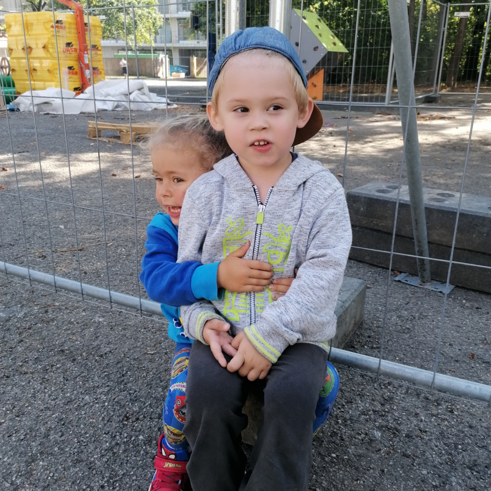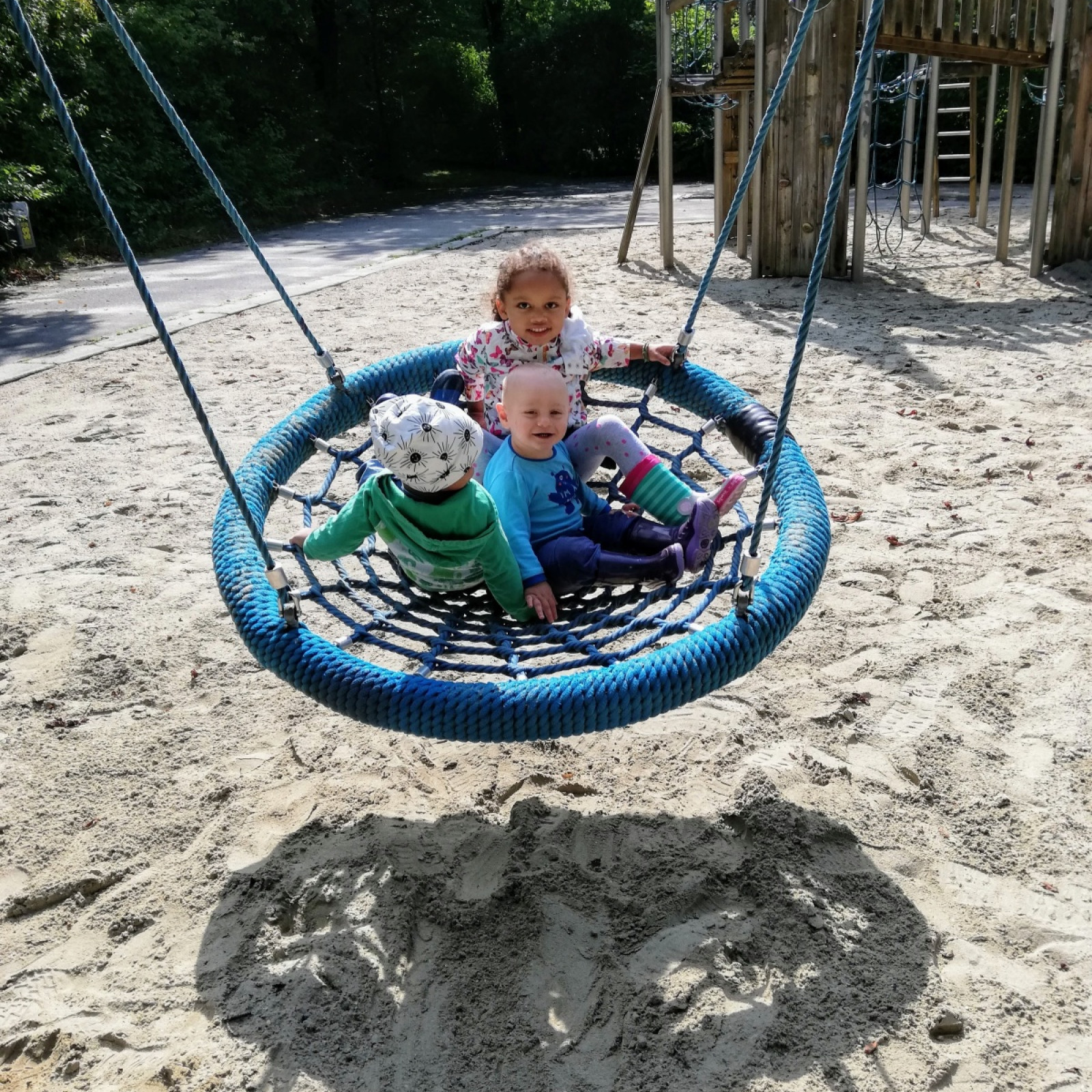 Wir haben an unserem Wohnhaus einen abgegrenzten Hof, welcher auf der hinteren Seite durch ein Tor (Türklinke außer Kinderreichweite) und an der vorderen Seite durch eine schwere Holztür verschlossen ist. In diesem Hof bieten sich unter anderem die Möglichkeiten mit Bällen zu spielen, unsere Rutsche-Autos oder ein Laufrad zu fahren oder einfach frei zu spielen. Außerdem können wir hier gemeinsam auf der kleinen Grünfläche in einem kleinen Hochbeet Gemüse, Kräuter oder Obst anpflanzen. Ebenso haben wir eine kleine Rutsche die bereits für Laufanfänger geeignet ist.