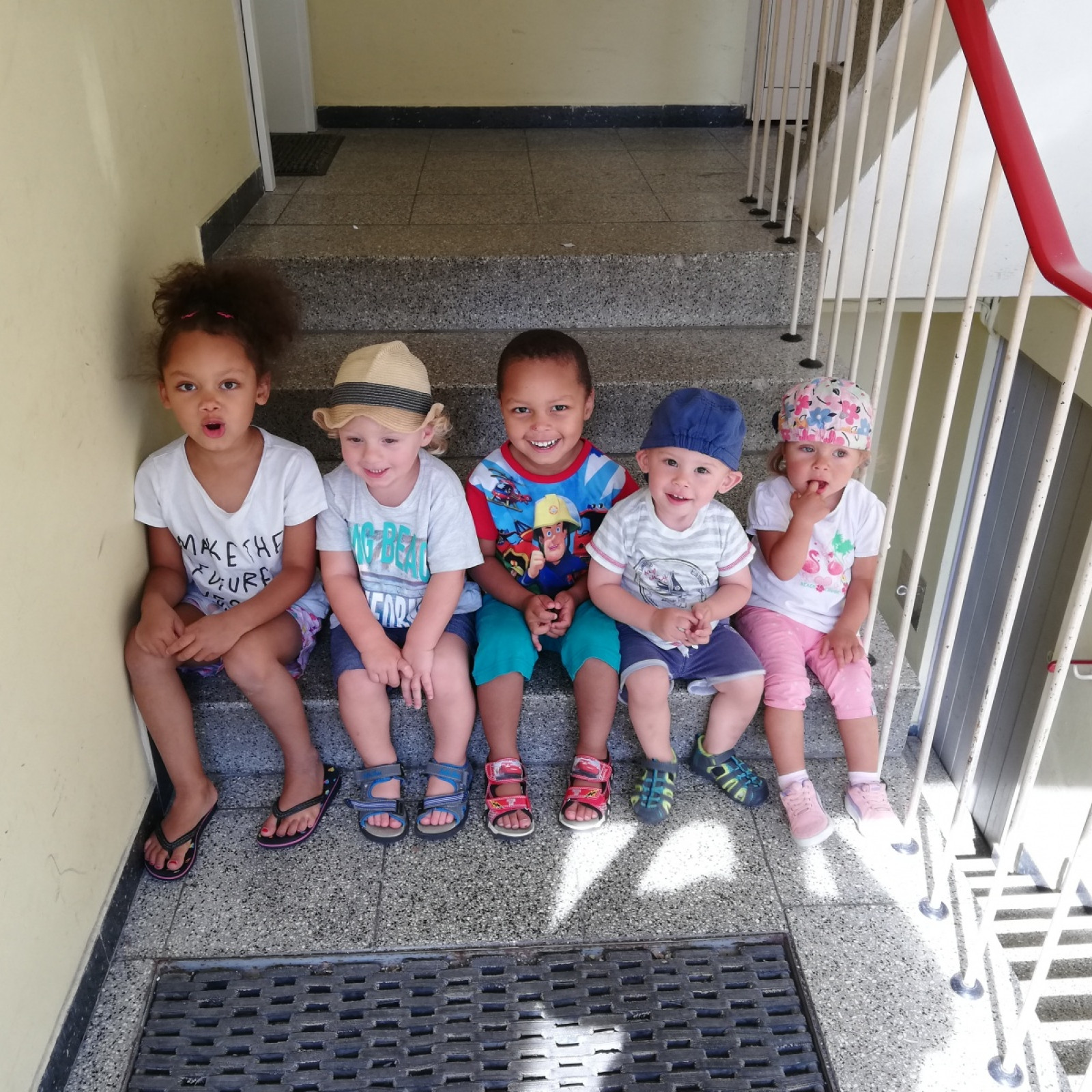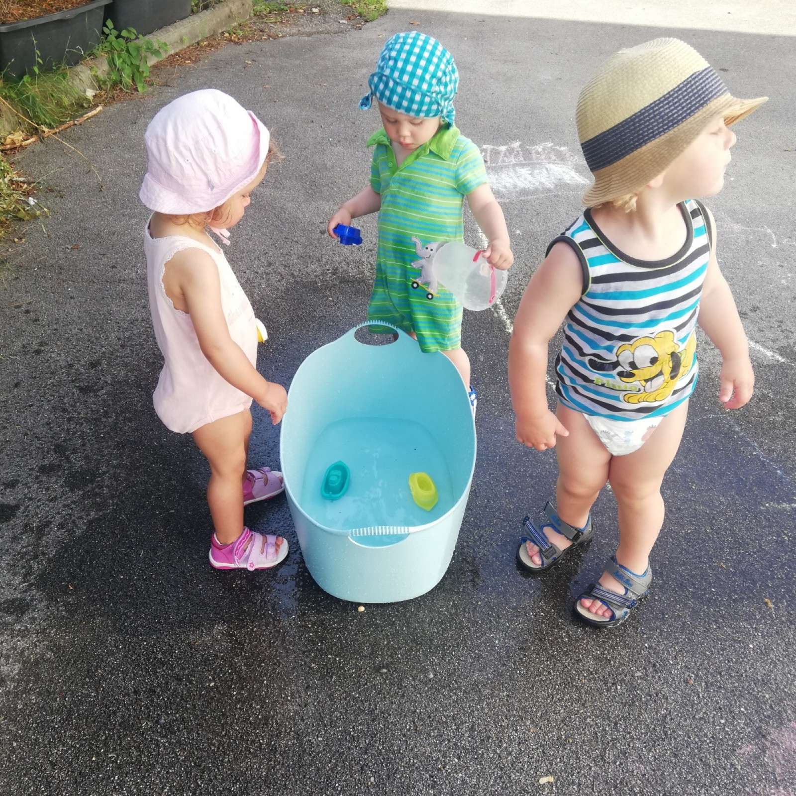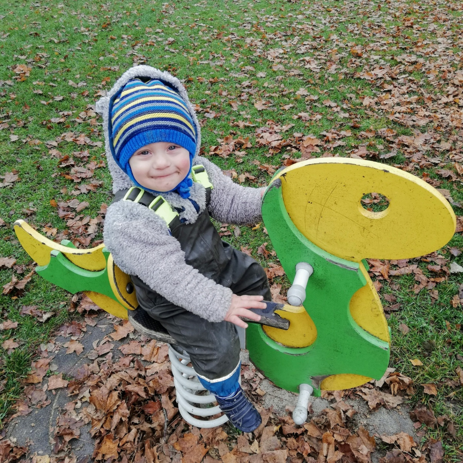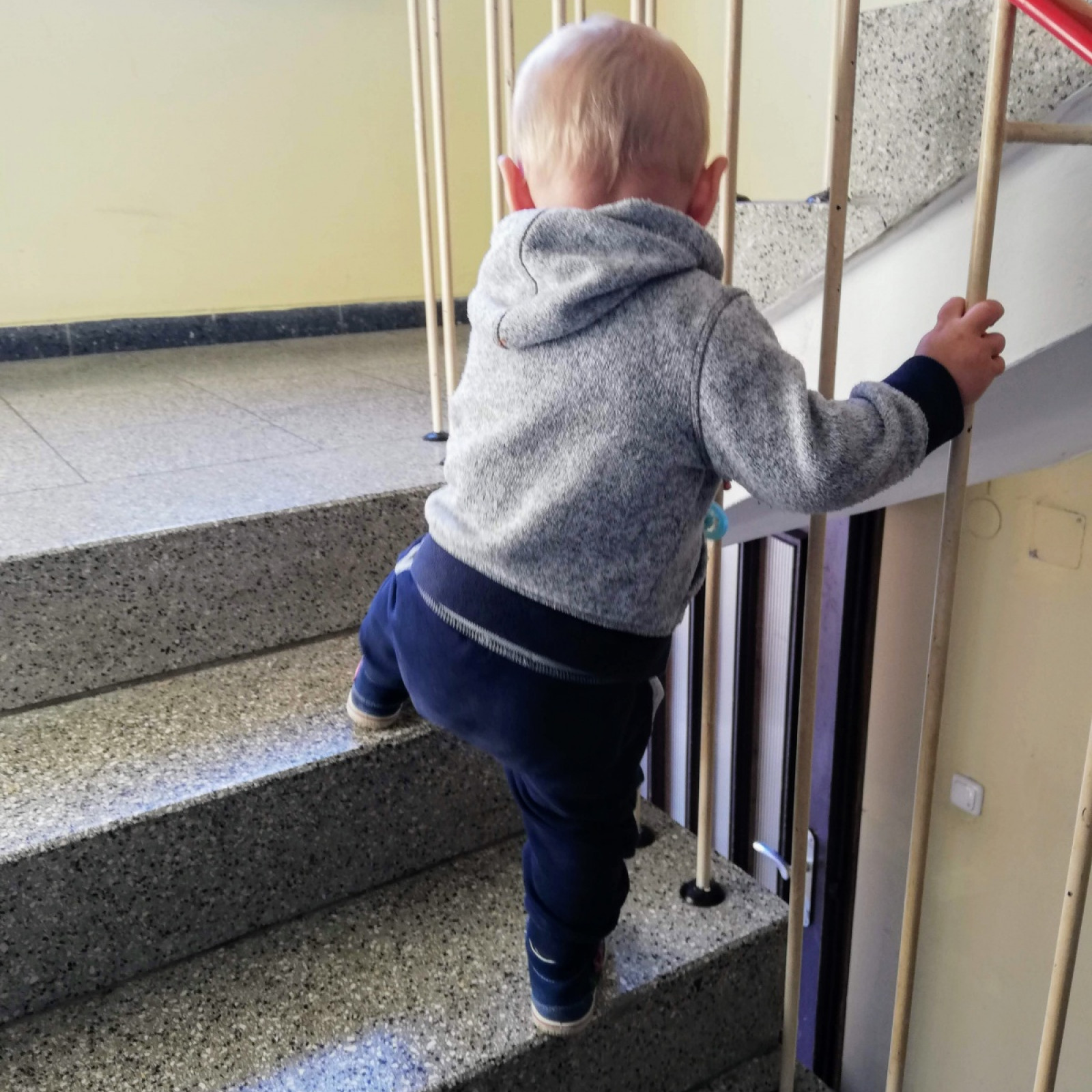 Wir haben an unserem Wohnhaus einen abgegrenzten Hof, welcher auf der hinteren Seite durch ein Tor (Türklinke außer Kinderreichweite) und an der vorderen Seite durch eine schwere Holztür verschlossen ist. In diesem Hof bieten sich unter anderem die Möglichkeiten mit Bällen zu spielen, unsere Rutsche-Autos oder ein Laufrad zu fahren oder einfach frei zu spielen. Außerdem können wir hier gemeinsam auf der kleinen Grünfläche in einem kleinen Hochbeet Gemüse, Kräuter oder Obst anpflanzen. Ebenso haben wir eine kleine Rutsche die bereits für Laufanfänger geeignet ist.