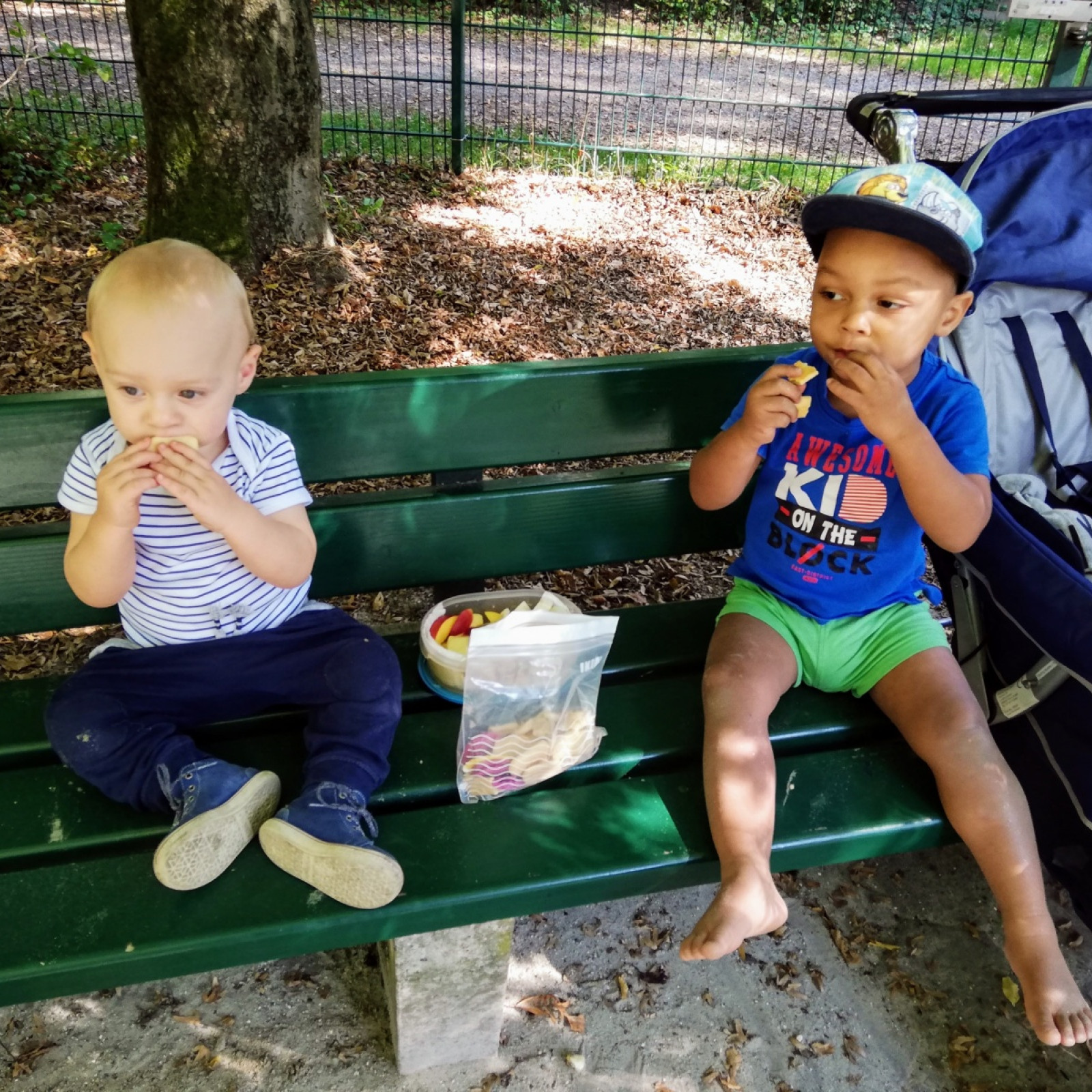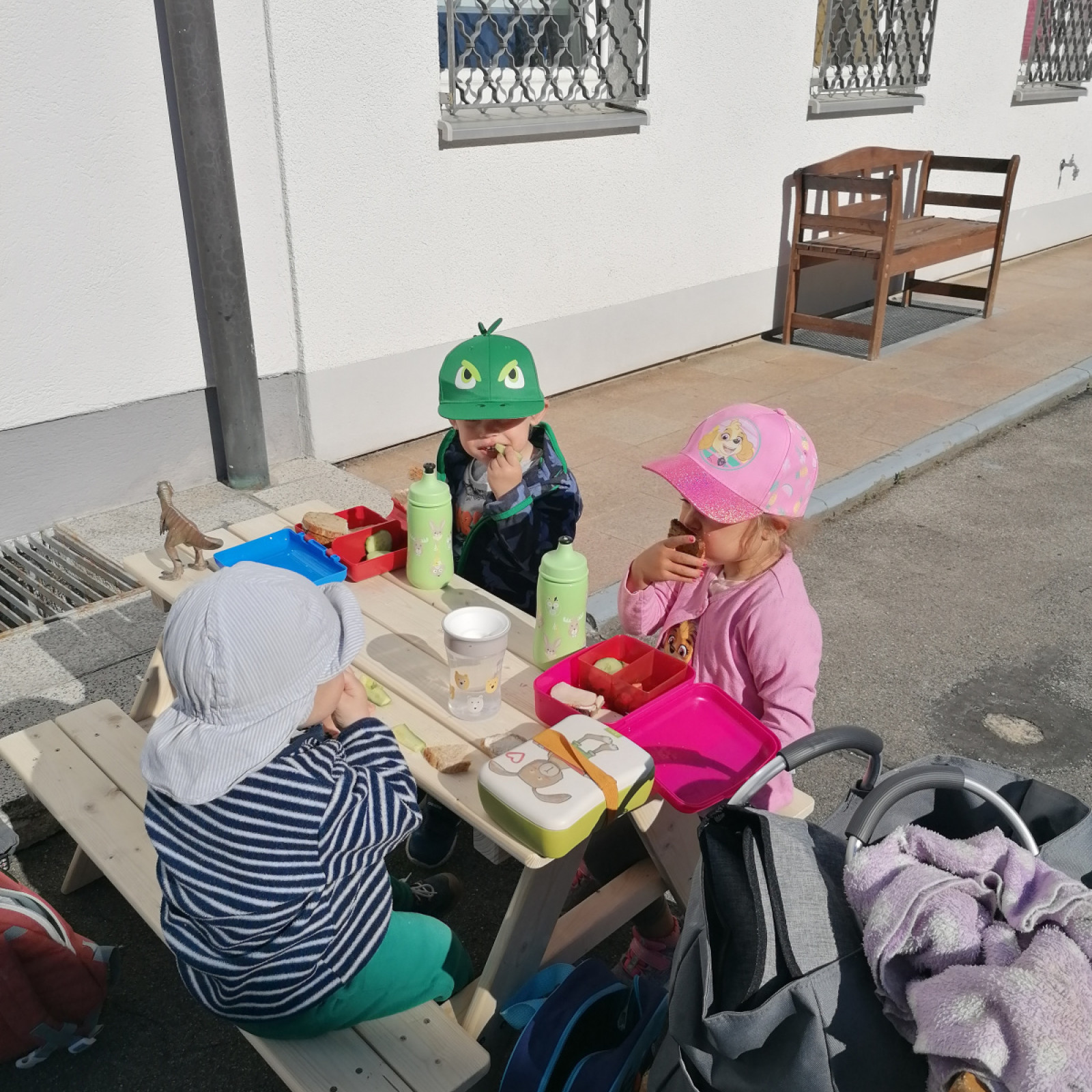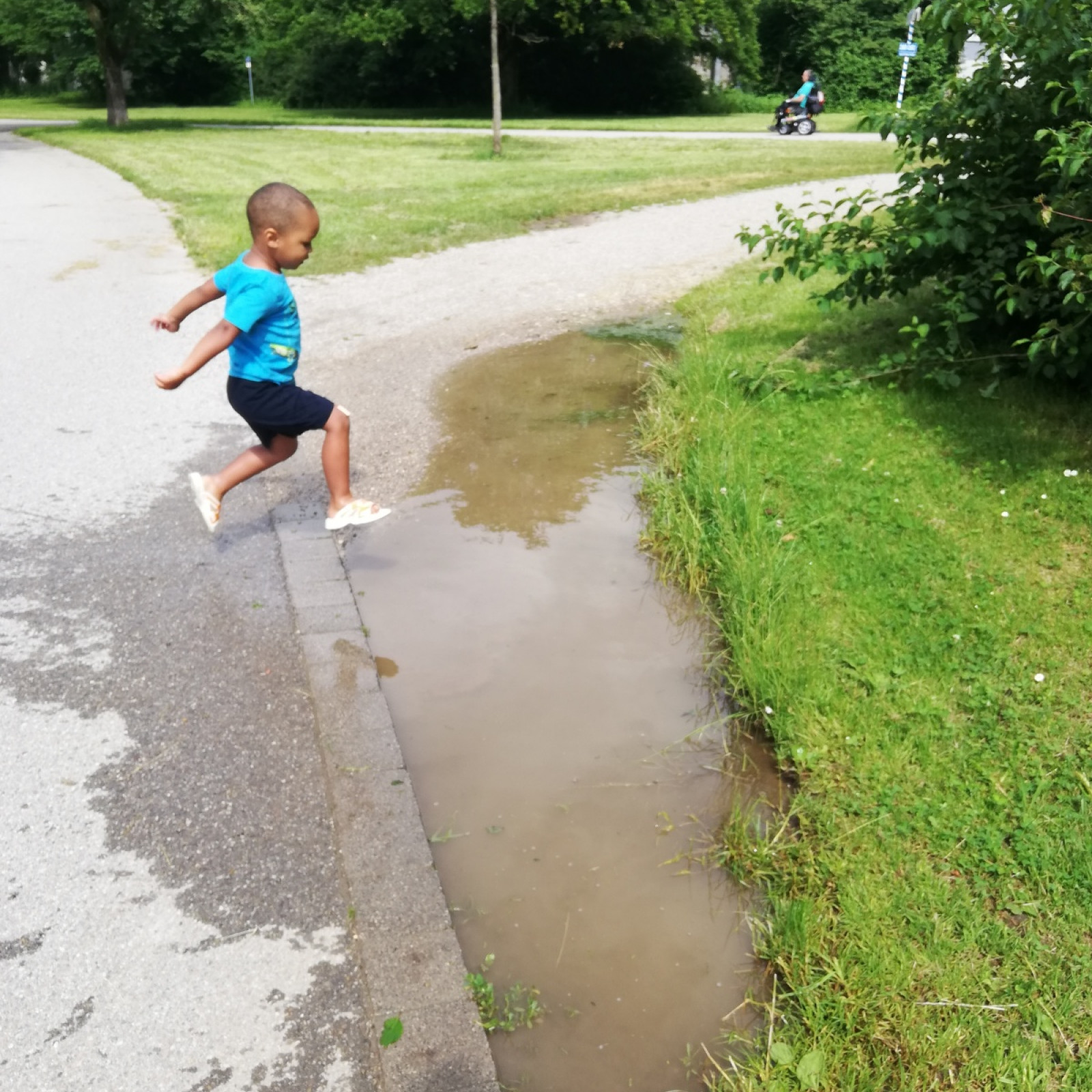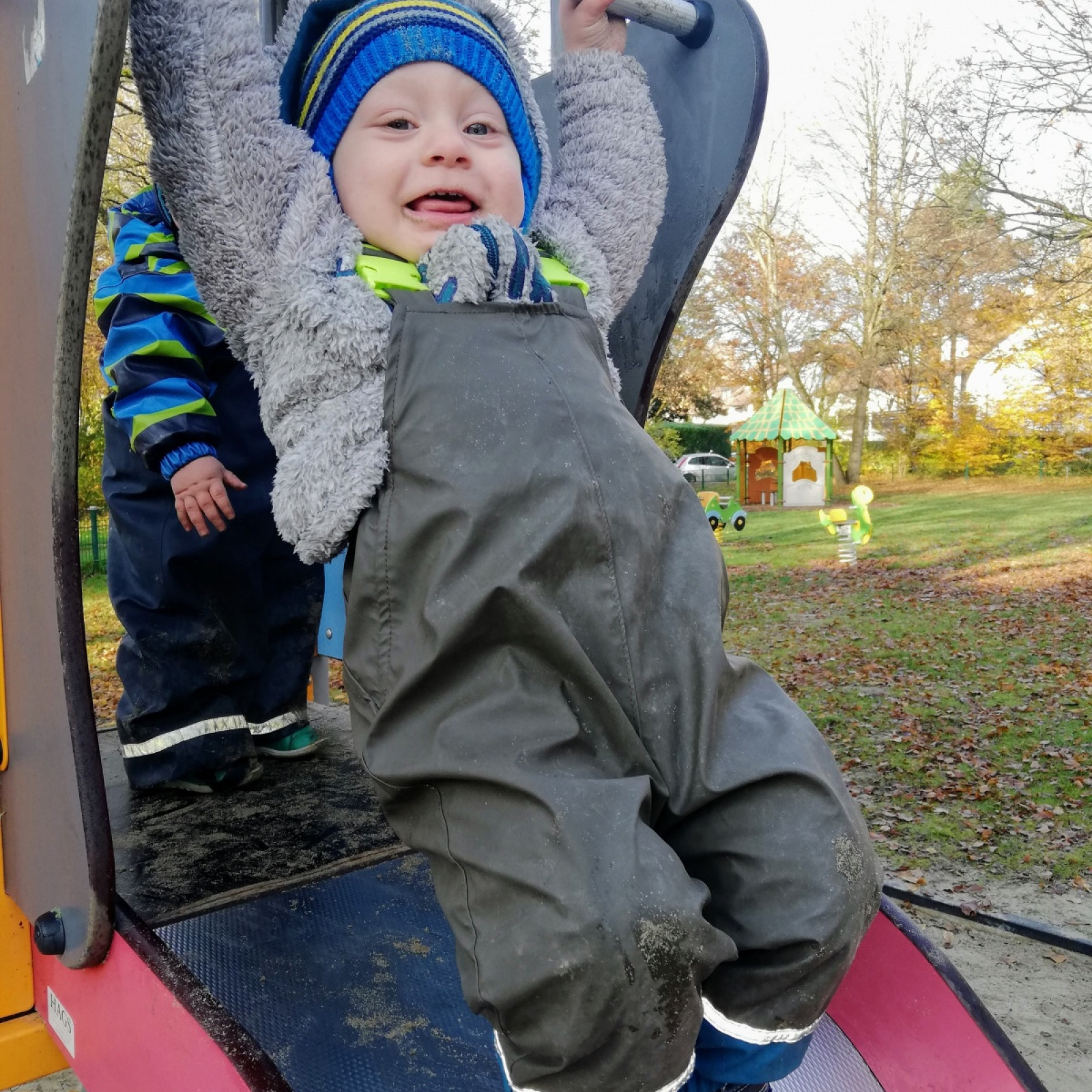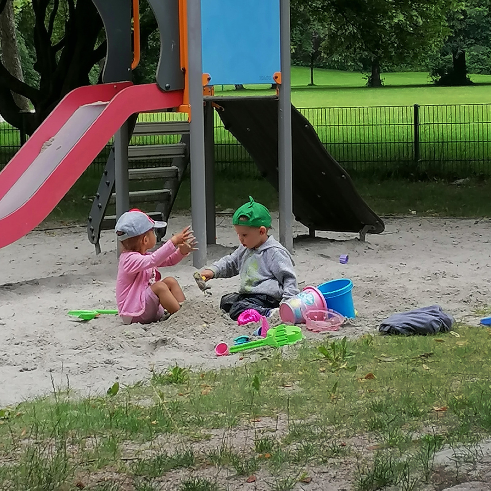 Wir haben an unserem Wohnhaus einen abgegrenzten Hof, welcher auf der hinteren Seite durch ein Tor (Türklinke außer Kinderreichweite) und an der vorderen Seite durch eine schwere Holztür verschlossen ist. In diesem Hof bieten sich unter anderem die Möglichkeiten mit Bällen zu spielen, unsere Rutsche-Autos oder ein Laufrad zu fahren oder einfach frei zu spielen. Außerdem können wir hier gemeinsam auf der kleinen Grünfläche in einem kleinen Hochbeet Gemüse, Kräuter oder Obst anpflanzen. Ebenso haben wir eine kleine Rutsche die bereits für Laufanfänger geeignet ist.